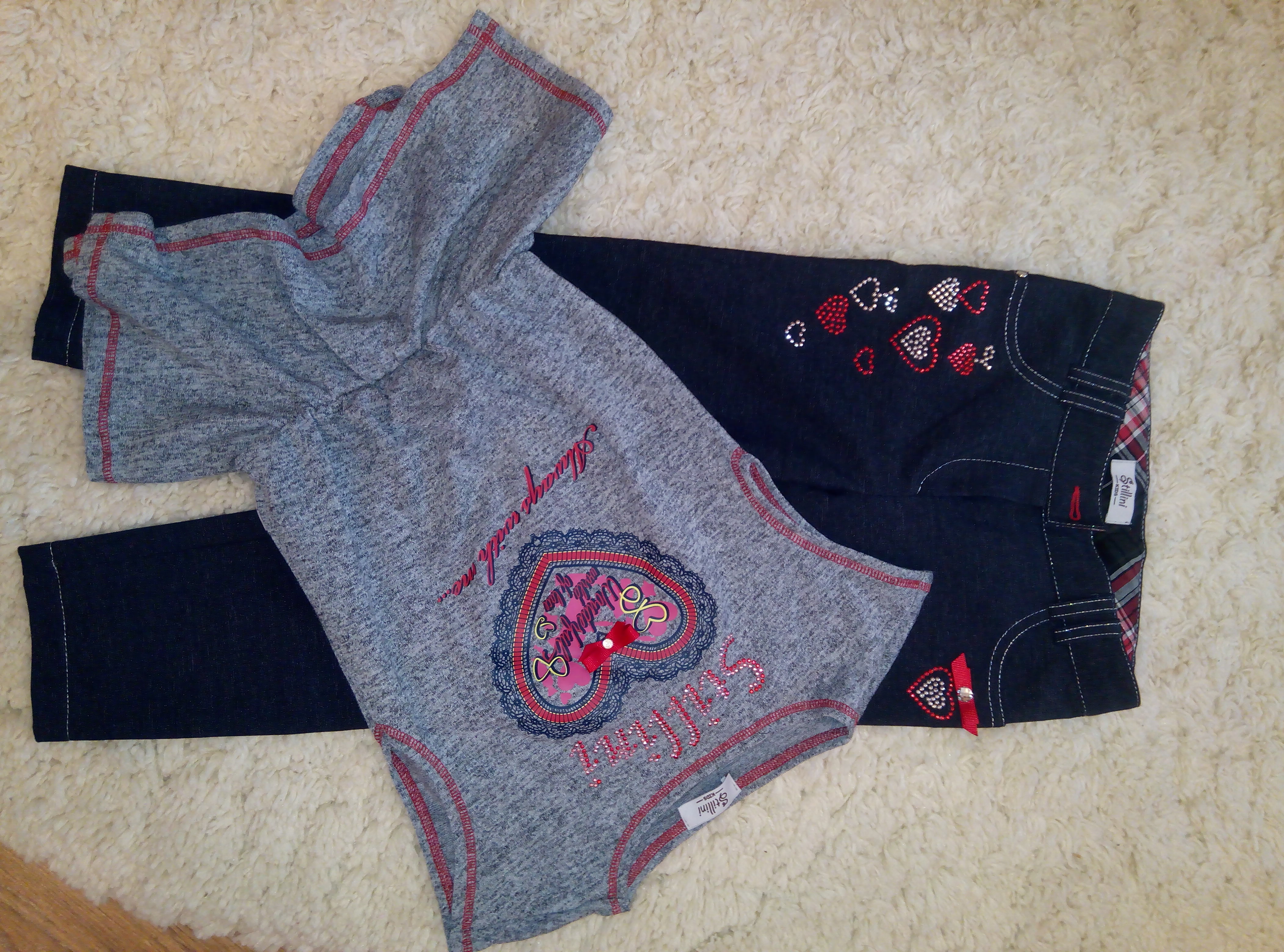 брюки плотный трикотаж цвета джинса и туника, очень красивый комплект!!!